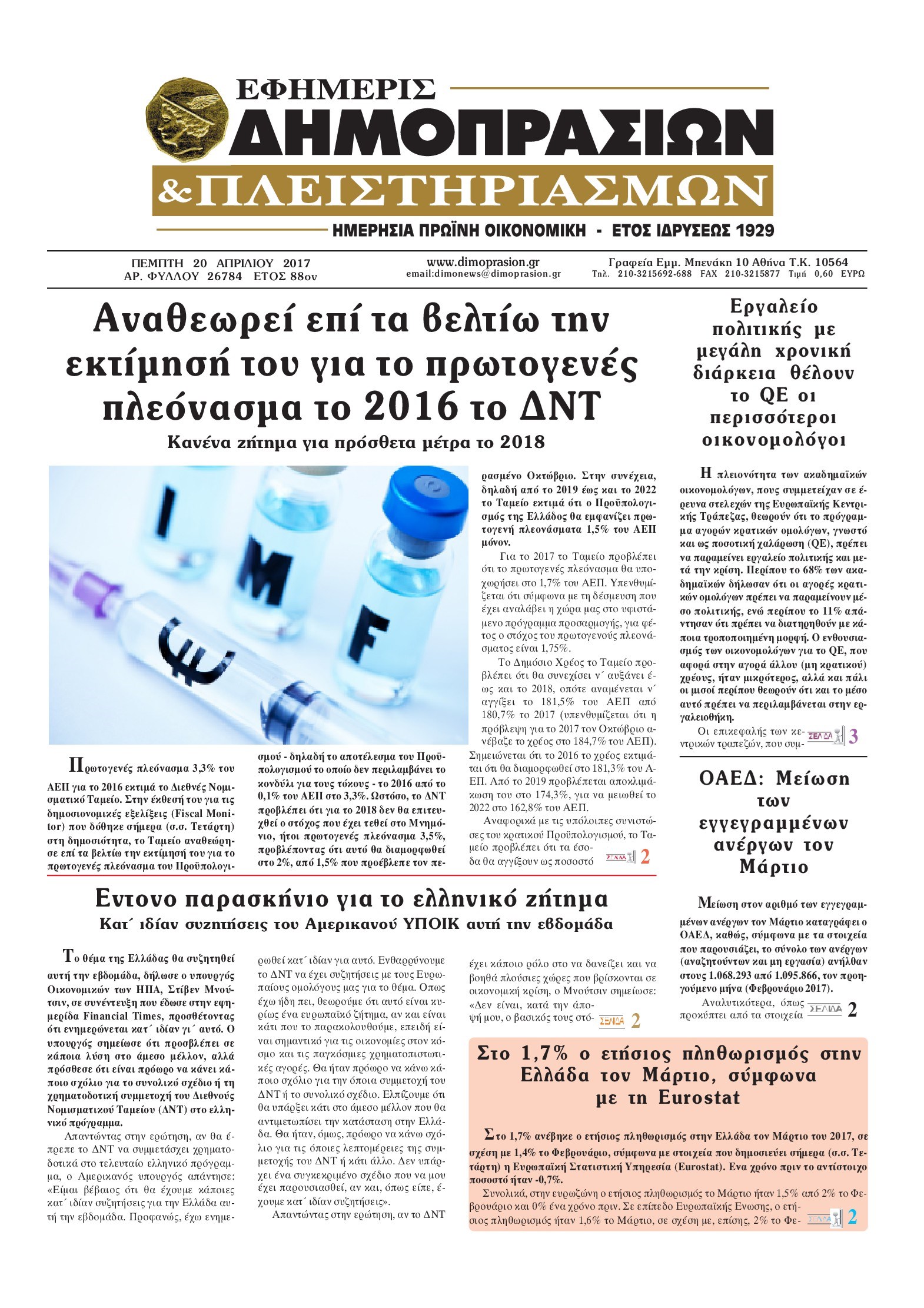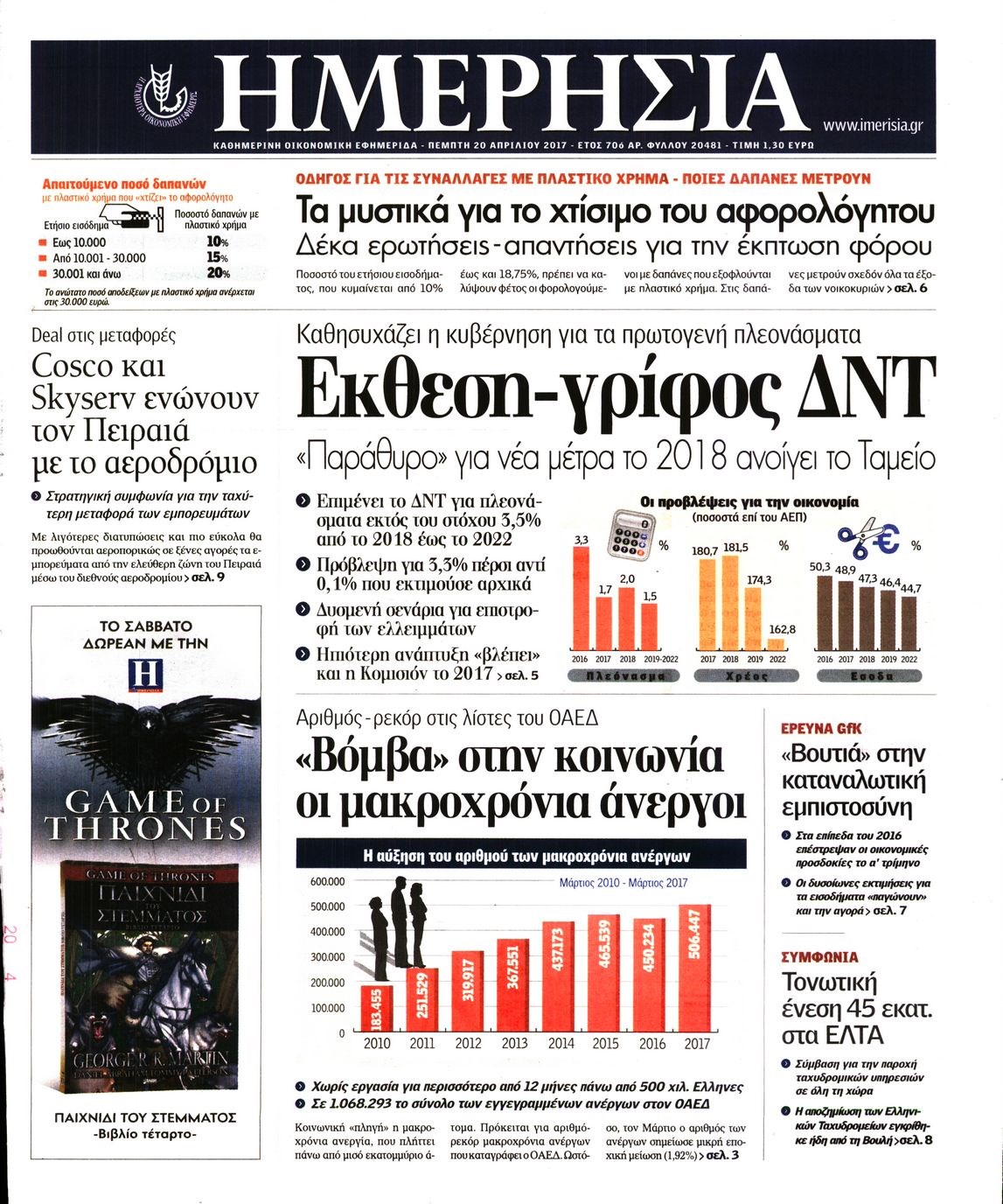 Διαβάστε τα σημερινά πρωτοσέλιδα των οικονομικών εφημερίδων:
