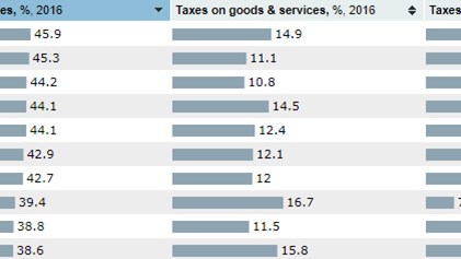 Πιο αναλυτικά η φορολογία στην Ελλάδα όσον αφορά στα αγαθά και τις υπηρεσίες ανέρχεται στο 15,8%, για εισοδήματα και κέρδη στο 9,1%, οι ασφαλιστικές εισφορές αγγίζουν το 11% και φορολογία στα ακίνητα φτάνει το 2,6% σύμφωνα με τον ΟΟΣΑ. Η χώρα μας έχει τη δεύτερη υψηλότερη φορολογία στα αγαθά και τις υπηρεσίες, πίσω μόνο από την Ουγγαρία με 16,7%.