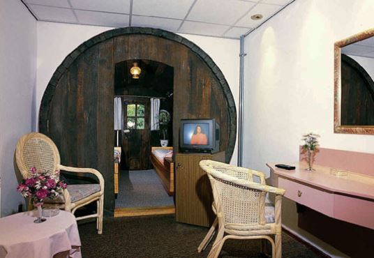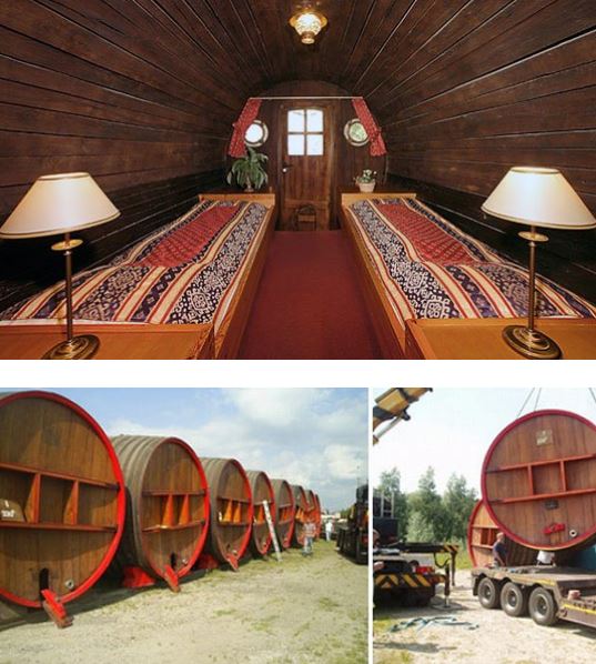 Το ξενοδοχείο De Vrouwe van Stavoren Hotel στην Ολλανδία μετέτρεψε τέσσερα παλιά βαρέλια κρασιού σε δωμάτια. Τα βαρέλια, χωρητικότητας 14.500 λίτρων, το καθένα, είναι τώρα δίκλινα δωμάτια που παρέχουν τις βασικές ανέσεις, μέχρι και ένα μικρό καθιστικό.