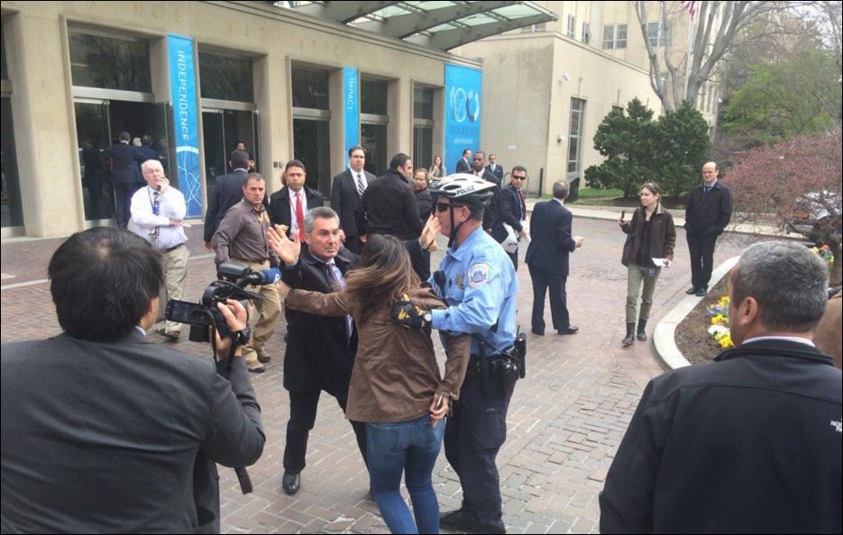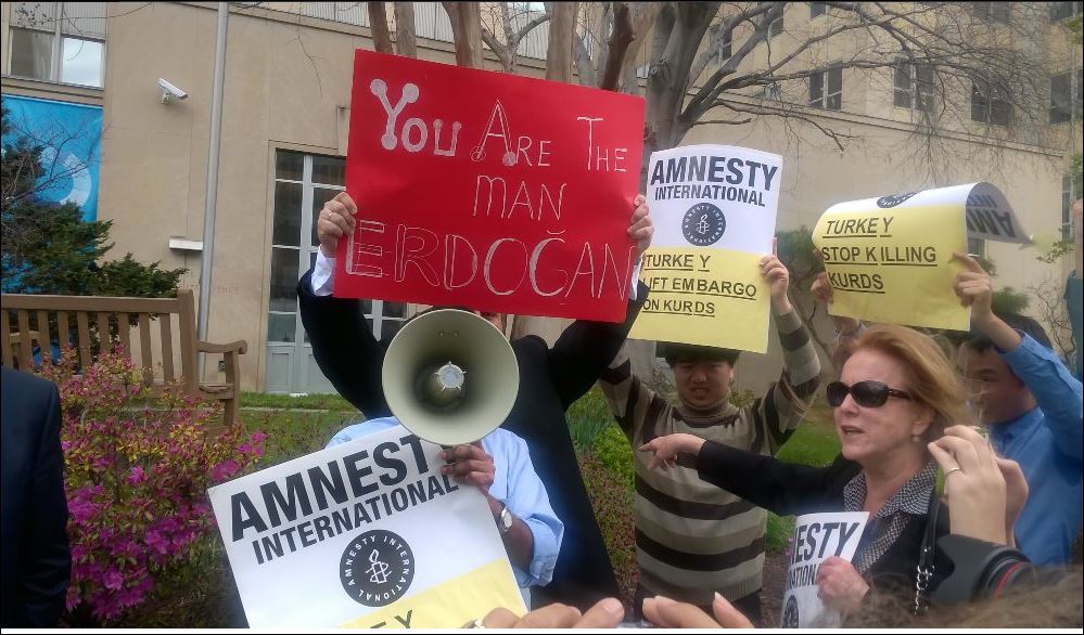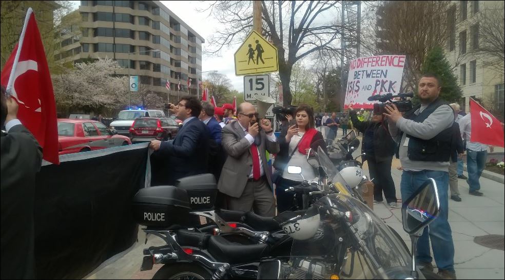 Οι αστυνομικοί του προέδρου της Τουρκίας άσκησαν πρωτοφανή βία στους διαδηλωτές που βρίσκονταν έξω από το Ινστιτούτο Brookings, τους κατέβασαν τα πλακάτ τους και τους ανάγκασαν να απομακρυνθούν από την είσοδο του κτιρίου.