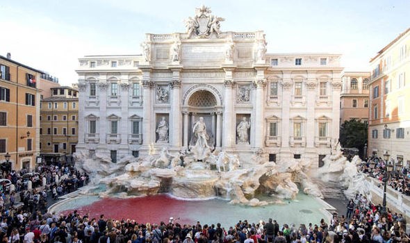 Κόκκινο βάφτηκε ένα από τα διασημότερα συντριβάνια του κόσμου, η Φοντάνα ντι Τρέβι, καθώς ένας Ιταλός ακτιβιστής έριξε κόκκινη μπογιά στα νερά της.