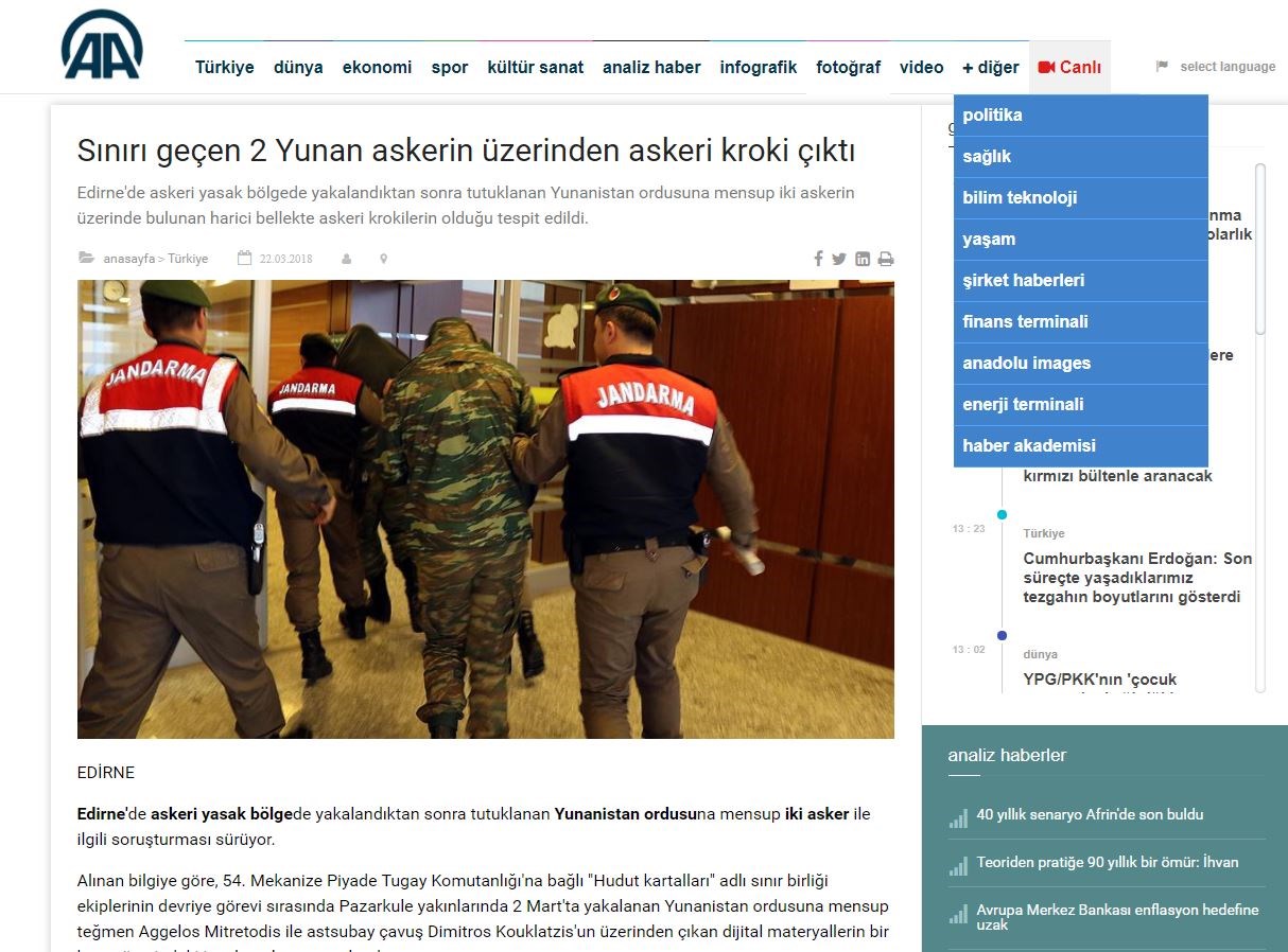 Anadolu: Στρατιωτικά σχεδιαγράμματα βρέθηκαν στα κινητά των δύο Ελλήνων στρατιωτικών – ΒΙΝΤΕΟ