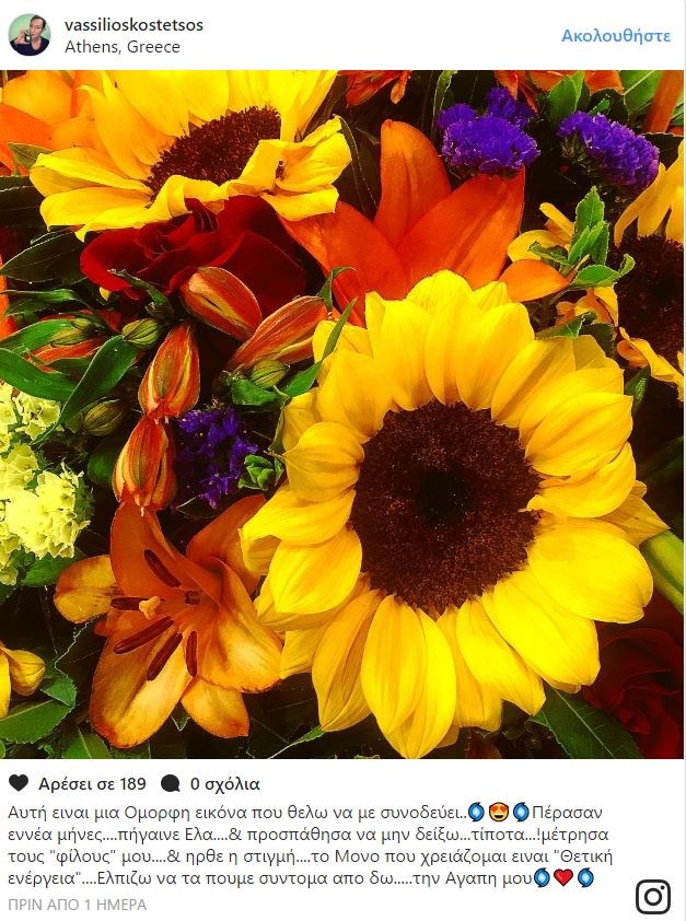 Ταυτόχρονα στο Instagram ανήρτησε μία φωτογραφία με λουλούδια στέλνοντας ένα συγκινητικό μήνυμα.