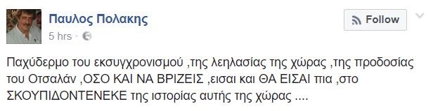 “Παχύδερμο του εκσυγχρονισμού ,της λεηλασίας της χώρας ,της προδοσίας του Οτσαλάν, όσο και να βρίζεις, είσαι και θα είσαι πια, στο σκουπιδοτενεκέ της ιστορίας αυτής της χώρας …”
