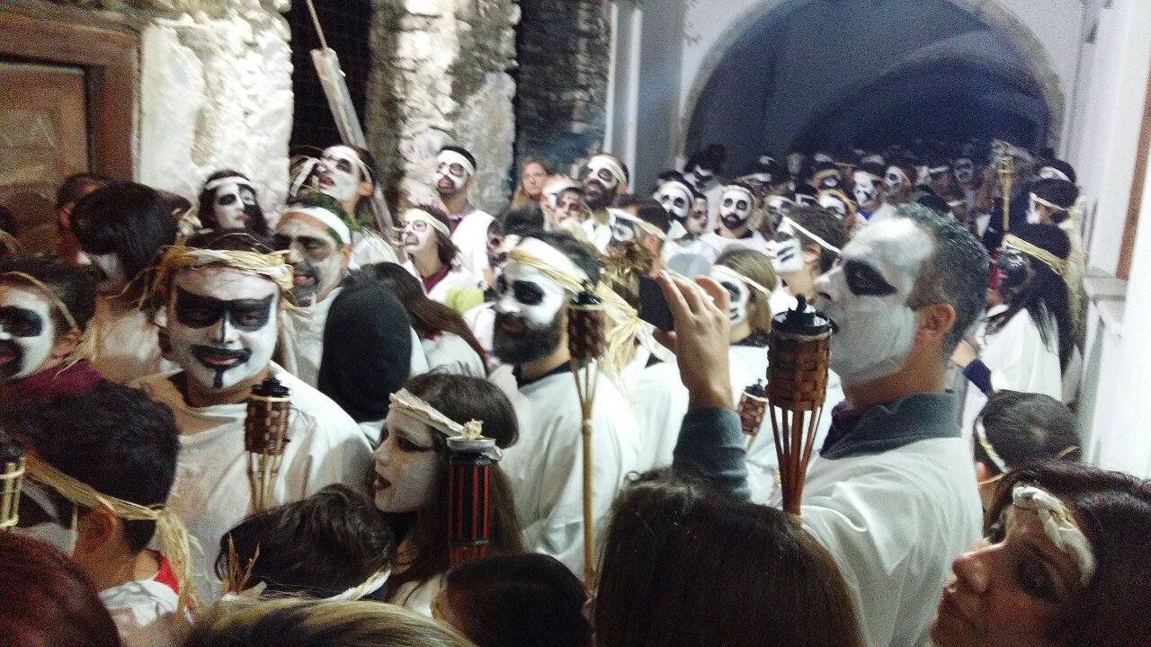 Οι λαμπαδηφόροι διασχίζοντας την παραλία της Νάξου φτάνουν στο ναό του Απόλλωνα (Πορτάρα) και στη συνέχεια στην πλατεία της παραλίας καίνε το “κακό”!