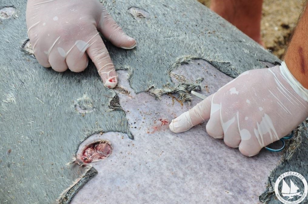 Σύμφωνα με ανακοίνωση του Ινστιτούτου, η φώκια έφερε σημάδια από πολλαπλές βολές με κυνηγετικό όπλο στη ράχη της. Με βάση τη φορά που είχαν τα σκάγια, εκτιμάται ότι η φώκια δέχτηκε τις βολές κατά την προσπάθειά της να απομακρυνθεί από το σημείο. Επίσης, έφερε εμφανές τραύμα από αιχμηρό αντικείμενο που είχε διαπεράσει τη δεξιά πλευρά της ράχης της και έφτανε έως το στομάχι.