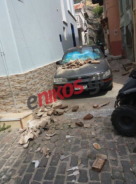 Πολλές ζημιές έχει προκαλέσει ο σεισμός σε παλιά κτίρια και τοίχους σπιτιών στη Βρίσα, το Πλωμάρι και το χωριό Σκάλα στον Πολίχνιτο.
