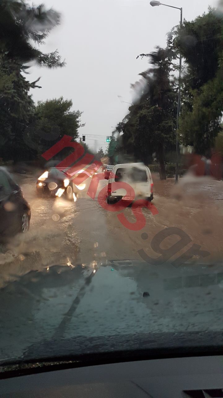 Η ισχυρή νεροποντή που εκδηλώθηκε στην Αττική δημιούργησε μεγάλη συσσώρευση υδάτων στους δρόμους των βορείων προαστίων.