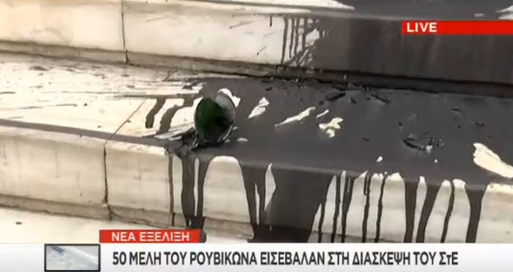 Ζημιές στην είσοδο του Συμβουλίου της Επικρατείας προκάλεσαν περί τα 70 άτομα, τα οποία δήλωσαν στον φρουρό του κτιρίου ότι ήταν μέλη του “Ρουβίκωνα“.