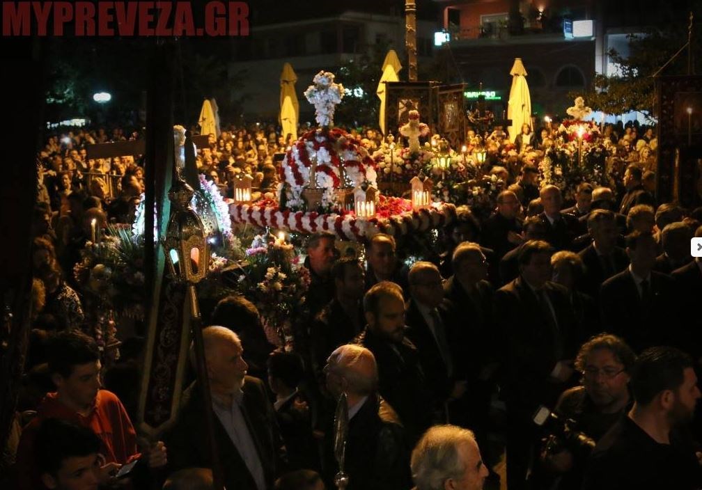 Με θρησκευτική κατάνυξη και παρουσία πλήθους πιστών πραγματοποιήθηκε τη Μεγάλη Παρασκευή η περιφορά των επιτάφιων στην πόλη της Πρέβεζας.