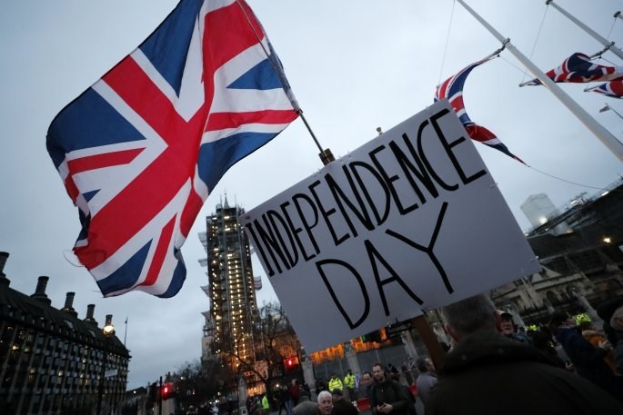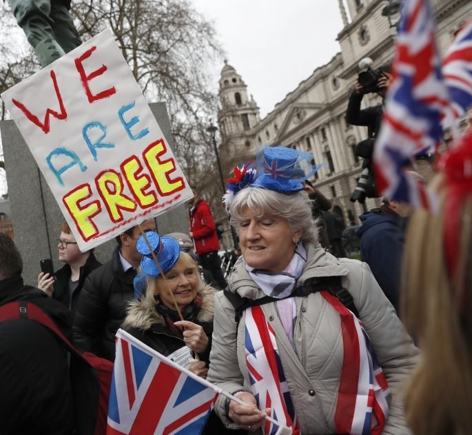 Στην πλατεία που βρίσκεται μπροστά στο κοινοβούλιο, είναι συγκεντρωμένο πλήθος κόσμου με σημαίες του Ηνωμένου Βασιλείου, συμμετέχοντας σε εορταστική εκδήλωση που διοργάνωσε το κόμμα του Brexit και η καμπάνια Leave means Leave. Υποστηρικτές της αποχώρησης έχουν περικυκλώσει το άγαλμα του Ουίνστον Τσόρτσιλ, που ήταν ένας από τους πιο ένθερμους υποστηρικτές της ενωμένης Ευρώπης και της ιδέας των ενωμένων κρατών.