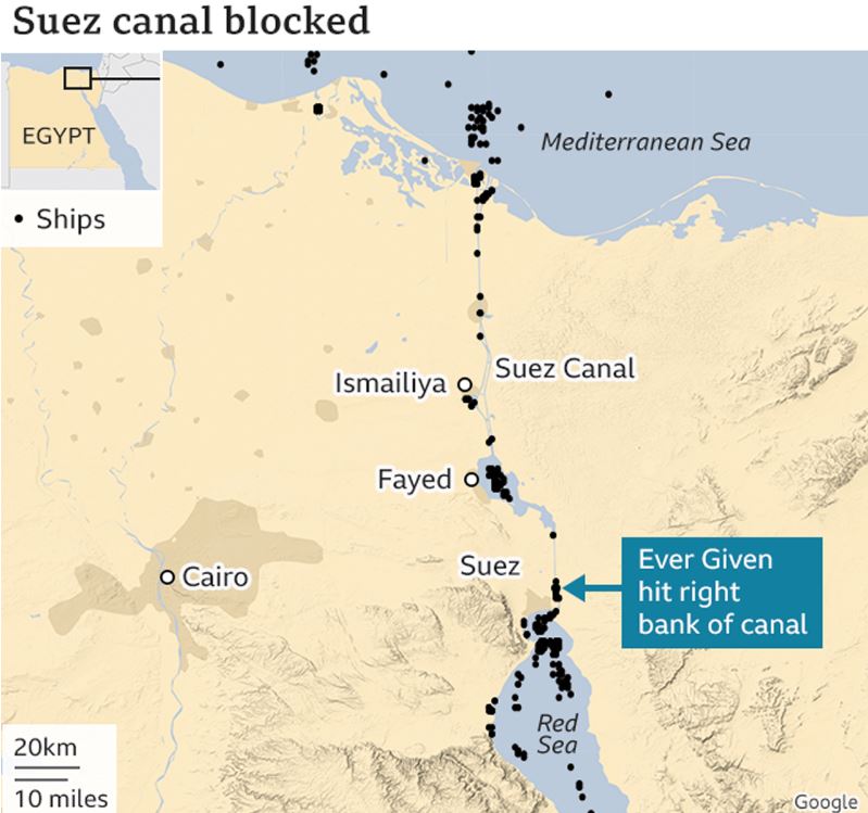 Η Lloyd’s List, υπολόγισε την Παρασκευή ότι αγαθά αξίας 9,6 δισ. δολαρίων περνούν καθημερινά από το κανάλι. Υπήρχαν επίσης ανησυχίες ότι η κατάσταση στο Σουέζ θα μπορούσε να επιδεινώσει ζητήματα για τη διεθνή αλυσίδα εφοδιασμού που ήδη υφίσταται πίεση από την πανδημία και την αύξηση στις τιμές των αγορών.
