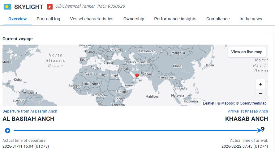 Oman’s Maritime Security Center says Palau-flagged oil tanker Skylight was targeted around 5 nautical miles off Oman’s Musandam.