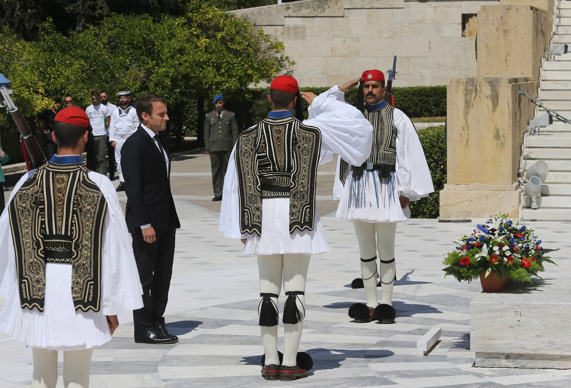 «Έγιναν πολλές θυσίες, ο ελληνικός λαός έχει πληρώσει υψηλό τίμημα» τόνισε ο Γάλλος Πρόεδρος, Εμανουέλ Μακρόν, κατά τη διάρκεια της ομιλίας του στο Προεδρικό Μέγαρο. Επεσήμανε παράλληλα ότι ο ίδιος και οι υπουργοί του θα συνεχίσουν τις προσπάθειες για να παραμείνει η Ελλάδα στην Ευρωζώνη, ενώ σημείωσε ότι χαιρετίζει τις μεταρρυθμίσεις της ελληνικής κυβέρνησης.