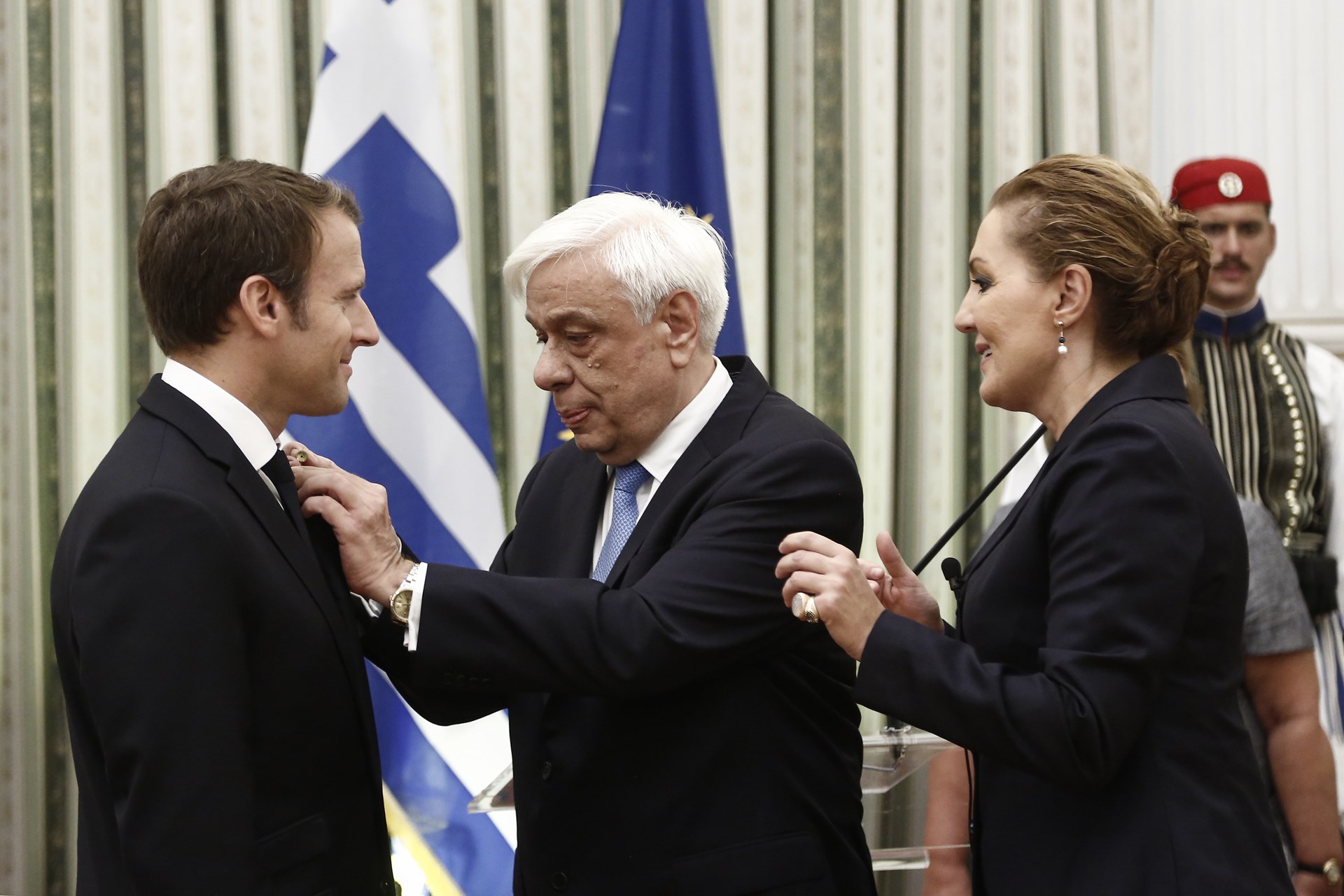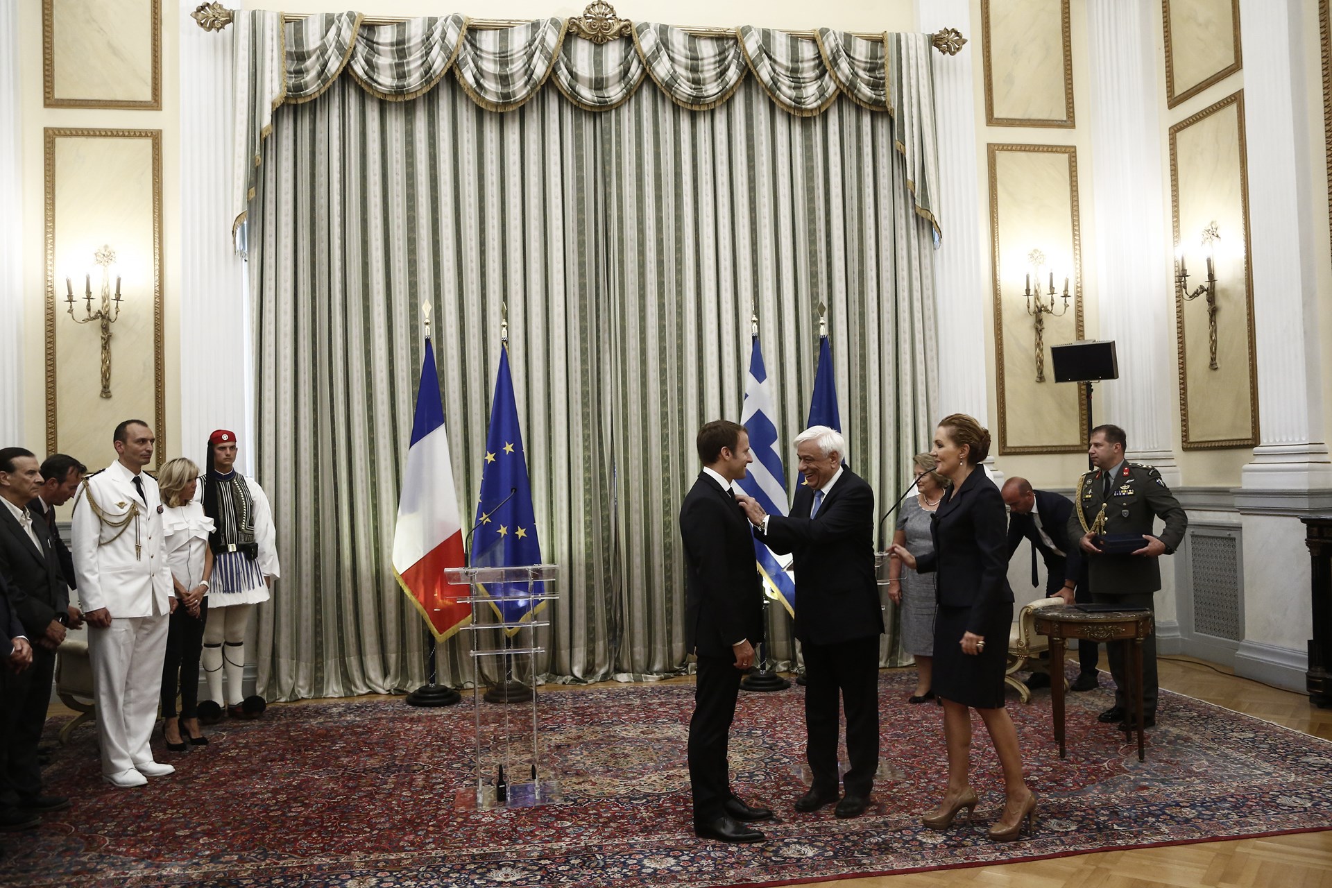 Ο Γάλλος Πρόεδρος, παρασημοφορήθηκε με το Παράσημο του Μεγαλόσταυρου του Σωτήρος, από τον Πρόεδρο της Δημοκρατίας, Προκόπη Παυλόπουλο. «Σας απονέμω την ανώτατη διάκριση του ελληνικού κράτους ως αναγνώριση όλων εκείνων τα οποία, είμαι βέβαιος, θα πράξετε τόσο για τη συνέχιση των εξαιρετικών σχέσεων των δύο χωρών μας, όσο και για τη διασφάλιση (mettre «en marche») της ευρωπαϊκής ολοκλήρωσης» υπογράμμισε ο κ. Παυλόπουλος.