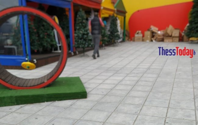 Οι πόρτες του καταστήματος είναι κλειστές μπροστά αλλά από πίσω δέχεται κανονικά πελάτες. Όπως μπορείτε να δείτε στις φωτογραφίες του Thesstoday.gr, πίσω τα μεγάλα χριστουγεννιάτικα δέντρα προσελκύουν το ενδιαφέρον του κοινού που μπαίνει στο μαγαζί για να ψωνίσει. Στην είσοδο κοντά στα ταμεία βρίσκονται κάποια ψιλικά είδη, σοκολάτες, πατατάκια και ζαχαρωτά, τα οποία το κοινό μπορεί να αγοράσει χωρίς πρόβλημα αφού είναι τρόφιμα, άρα είδη πρώτης ανάγκης, όπως μας ενημερώνουν οι εργαζόμενοι. Όμως στο βάθος βρίσκονται όλα τα χριστουγεννιάτικα, τα προϊόντα δηλαδή που συγκεντρώνουν περισσότερο κόσμο.