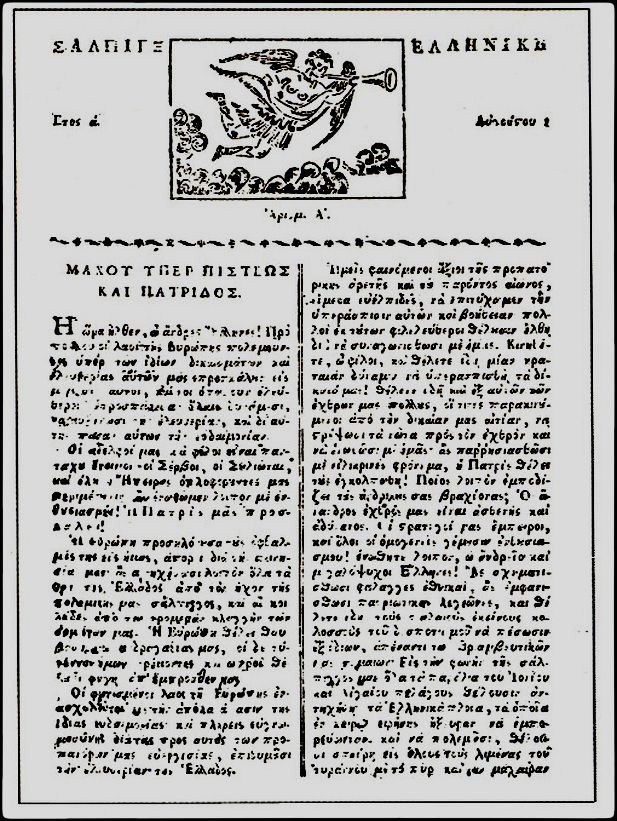 Φύλλο της εφημερίδας «Σάλπιγξ Ελληνική»