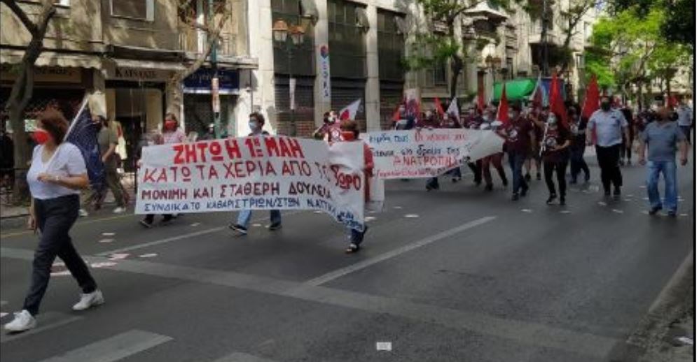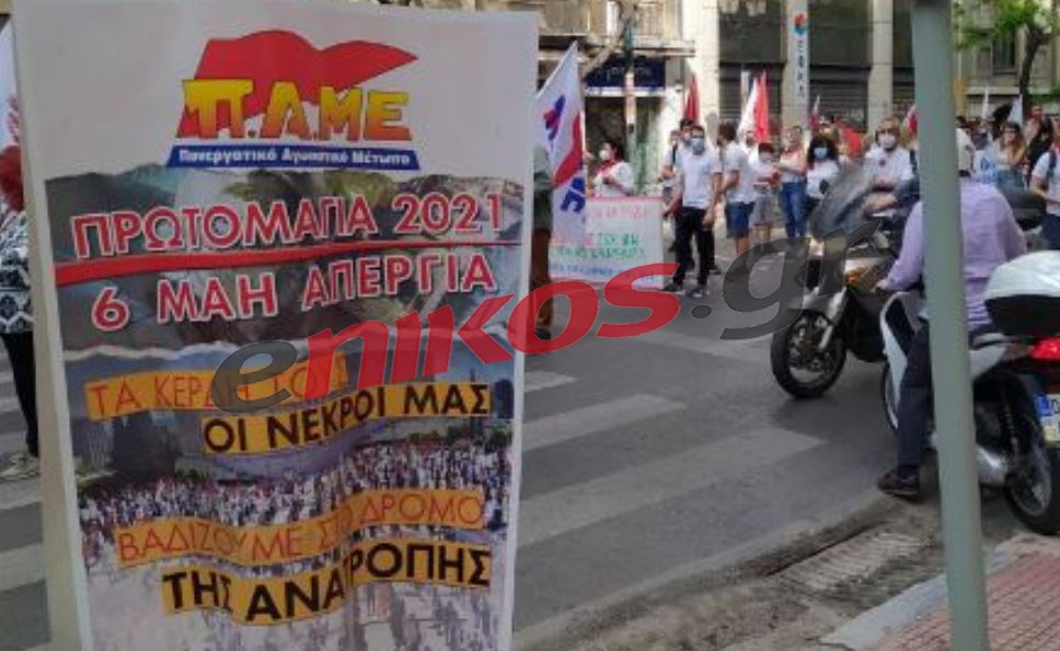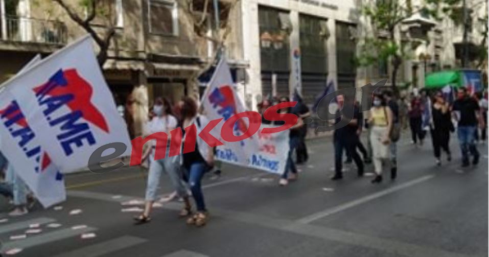Σε εξέλιξη είναι η πορεία του ΠΑΜΕ. Όλα ήταν έτοιμα από νωρίς στην πλατεία Συντάγματος για τη συγκέντρωση του ΠΑΜΕ και για να υποδεχθεί τους απεργούς για την Εργατική Πρωτομαγιά. Η πλάτη στην εξέδρα έχει το σύνθημα «Τα κέρδη τους – οι νεκροί μας. Βαδίζουμε στο δρόμο της ανατροπής».