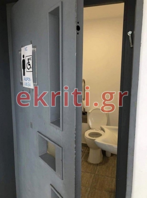 Πρόκειται για την τουαλέτα … ανελκυστήρα η οποία βρίσκεται στο γραφείου του Κτηματολογίου στον Εσταυρωμένο στο Ηράκλειο, στο πίσω μέρος του κτιρίου.