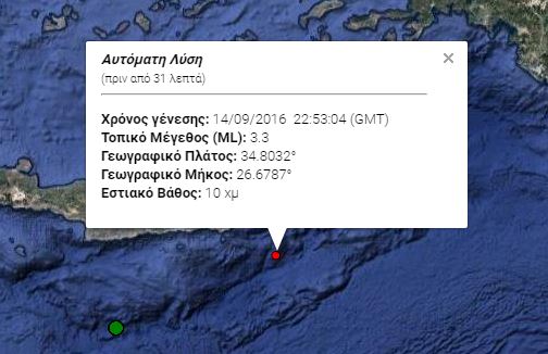 Ασθενής σεισμική δόνηση σημειώθηκε λίγο μετά τα μεσάνυχτα στα ανοιχτά του Αγίου Νικολάου Κρήτης.