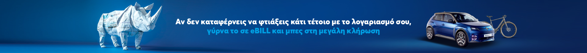 Άλλαξε τον τρόπο που λαμβάνεις τον λογαριασμό σου, ενεργοποιώντας την υπηρεσία eBILL, και πάρε μέρος στην κλήρωση για:
