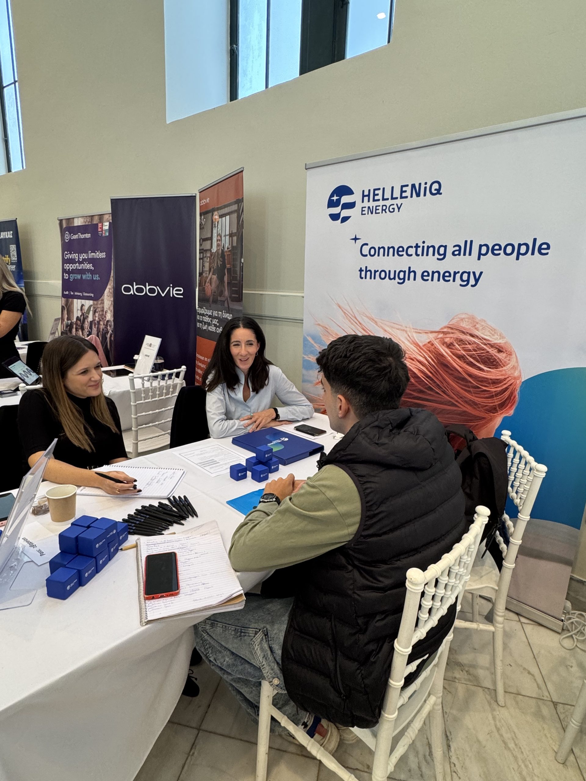 Η επένδυση της HELLENiQ ENERGY στη νέα γενιά επαγγελματιών, αποδεικνύεται και από τις στρατηγικές συνεργασίες με εγχώρια ακαδημαϊκά ιδρύματα. Στις Ημέρες Καριέρας του Οικονομικού Πανεπιστημίου Αθηνών (Ο.Π.Α.), στελέχη του Ομίλου συνομίλησαν με προπτυχιακούς και μεταπτυχιακούς φοιτητές, υποψήφιους διδάκτορες, κατόχους διδακτορικού, και εκπαιδευόμενους του Κέντρου Επιμόρφωσης & Δια Βίου Μάθησης (ΚΕ.ΔΙ.ΒΙ.Μ) του Ο.Π.Α., παρουσιάζοντας τις δραστηριότητες της εταιρείας σε τομείς αιχμής, όπως η πράσινη ενέργεια, η τεχνολογία και το ESG.