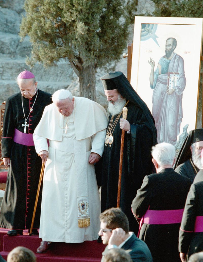 Η επίσκεψη του Πάπα Παύλου του Β΄ στην Αθήνα το 2001 ήταν η πρώτη φορά που επισκέφθηκε Πάπας την Ελλάδα. Αφού προσευχήθηκε στον βράχο του Αρείου Πάγου απέναντι από την Ακρόπολη όπου δίδαξε ο Απόστολος Παύλος, ζήτησε μετά δημόσια «συγγνώμη» στα Ελληνικά, για τα εγκλήματα των Καθολικών απέναντι στην Ορθοδοξία με την Σταυροφορία του 1204, τονίζοντας για το Σχίσμα πως: «Η διαίρεση των Χριστιανών είναι αμάρτημα στα μάτια του Θεού, σκάνδαλο στα μάτια του κόσμου και τροχοπέδη στη διάδοση του Ευαγγελίου».