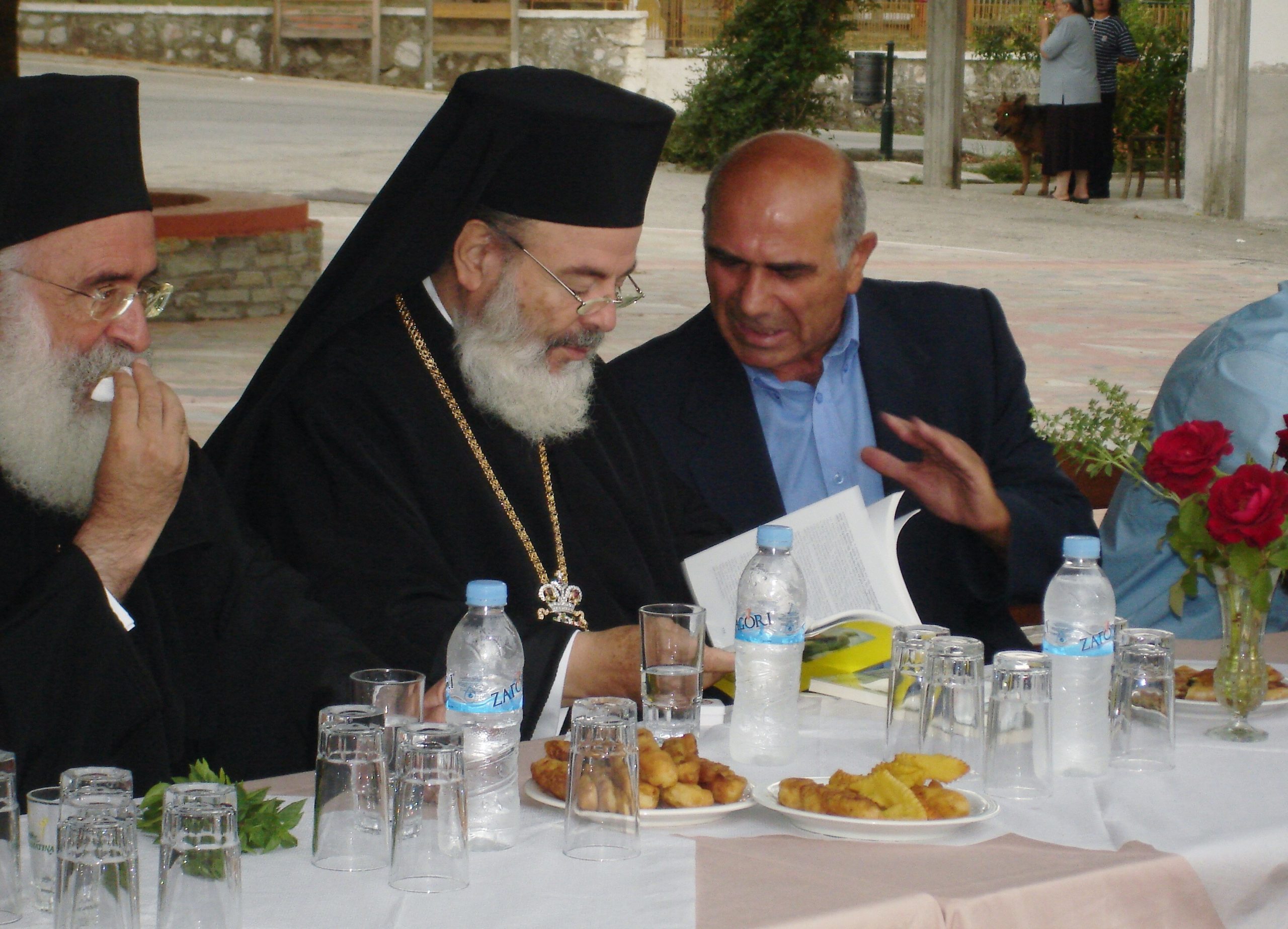 Τον υποδεχθήκαμε με τιμές. Kαθίσαμε στην πλατεία, συζητήσαμε αρκετή ώρα και προσωπικά μου άφησε την εντύπωση ενός άξιου ηγέτη της Ορθοδοξίας. Πονόψυχος, βοηθούσε πλήθος φτωχών οικογενειών και με ρωτούσε για την διαβίωση των κατοίκων, ευχόμενος να περνούν καλά, χωρίς να γνωρίσουν δυστυχίες. Συναντήθηκα αρκετές φορές μαζί του στο γραφείο του και η τελευταία μας ήταν στο Ναό Αγίου Νικολάου στα Κάτω Πατήσια τον Σεπτέμβριο του 2007 στο μνημόσυνο για τους νεκρούς της Μικρασιατικής καταστροφής. Στο τέλος της ομιλίας του είπε με συγκίνηση: «Να αναπαυθούν οι ψυχές των Ελλήνων που άφησαν τα κορμιά τους στην Μικρά Ασία και τον Πόντο στους διωγμούς, τις εξορίες και τις εκτελέσεις των αιμοσταγών Τούρκων. Αιωνία τους η μνήμη!».