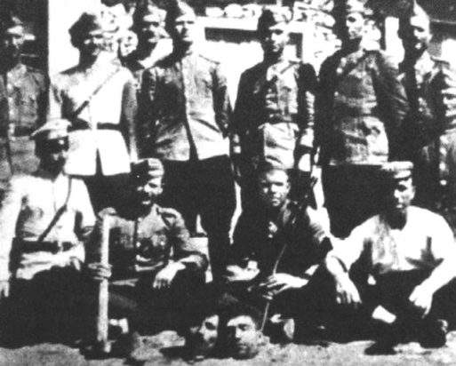 Λεζάντες φωτογραφιών : 1) Βούλγαροι στρατιώτες, ο ένας με το τσεκούρι, καμαρώνουν μπρος στα κομμένα κεφάλια!… 2) Η ηρωίδα Κυριακούλα Στίγκα. 3) Μπροστά στην προτομή της ηρωίδας ο αείμνηστος αντάρτης γιος της Ανδρέας (πέθανε το 2010). 4) Νίκος Σιδηρόπουλος, αντάρτης 20 ετών και 5) Κωστάκης Παπαδόπουλος, τροφοδότης των ανταρτών, 16 ετών, εκτελεσθέντες.