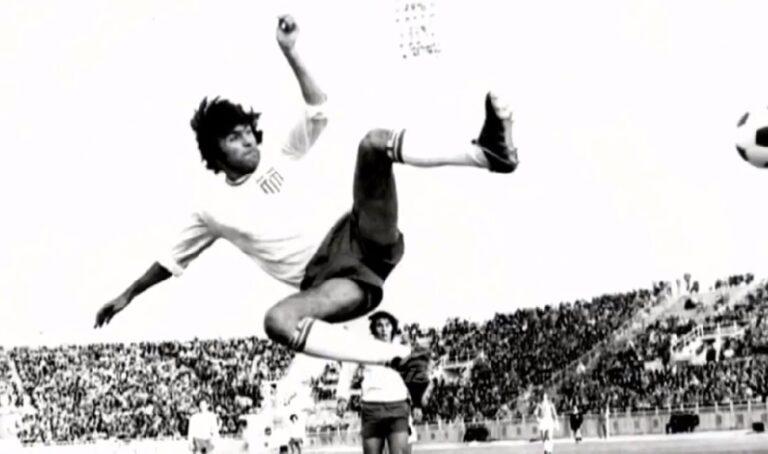 Ανεξάλειπτο έτσι έχει μείνει στην ιστορία του ποδοσφαίρου, το ασύλληπτο γκολ που σημείωσε με την Εθνική μας Ομάδα, εναντίον της Εθνικής Γερμανίας για την πρόκριση στο Κύπελλο Εθνών του 1976, στις 20 Νοεμβρίου 1974 στο Στάδιο Καραϊσκάκη, εξακοντίζοντας τη φήμη του, σε όλη την Ευρώπη.