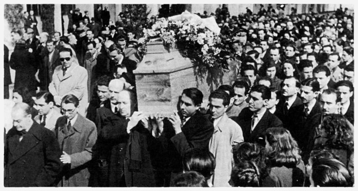 Την επομένη παραμερίστηκαν όλα και με σφιγμένη καρδιά ένας απέραντος ανθρώπινος ποταμός κατέκλυσε το νεκροταφείο. Στεφάνια εξιλέωσης έστειλαν, ο κατοχικός πρωθυπουργός Λογοθετόπουλος και οι πληρεξούσιοι υπουργοί Γερμανίας και Ιταλίας. Ο αρχιεπίσκοπος Δαμασκηνός, σαν πνευματικός αρχηγός του έθνους τον αποχαιρέτησε και μετά αντήχησε βροντερός ο λόγος του Σικελιανού: «Ηχήστε σάλπιγγες, καμπάνες βροντερές, δονήστε σύγκορμη τη χώρα, πέρα ως πέρα. Βογγήστε τύμπανα πολέμου… Οι φοβερές σημαίες, ξεδιπλωθείτε στον αέρα! Σ’ αυτό το φέρετρο ακουμπά η Ελλάδα…!».
