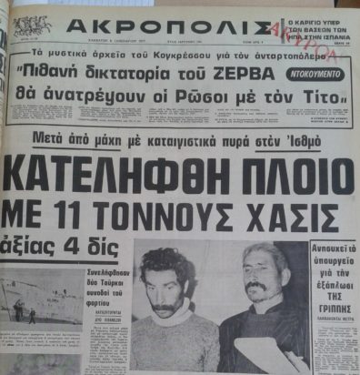 Όπως το «έγκλημα στου Χαροκόπου», όπου μάνα και θυγατέρα σκότωσαν, τεμάχισαν και πέταξαν στον Κηφισό τον σύζυγο και γαμπρό εργολάβο Αθανασόπουλο, έγινε άσμα και το τραγουδούσε όλη η Ελλάδα, έτσι και το βαπόρι με το τεράστιο φορτίο χασίς, που πιάστηκε στον Ισθμό της Κορίνθου, έγινε μεγάλο σουξέ από τον συνθέτη Βασίλη Τσιτσάνη. Ας δούμε την ιστορία του περιβόητου βαποριού, γεμάτο χασίς.