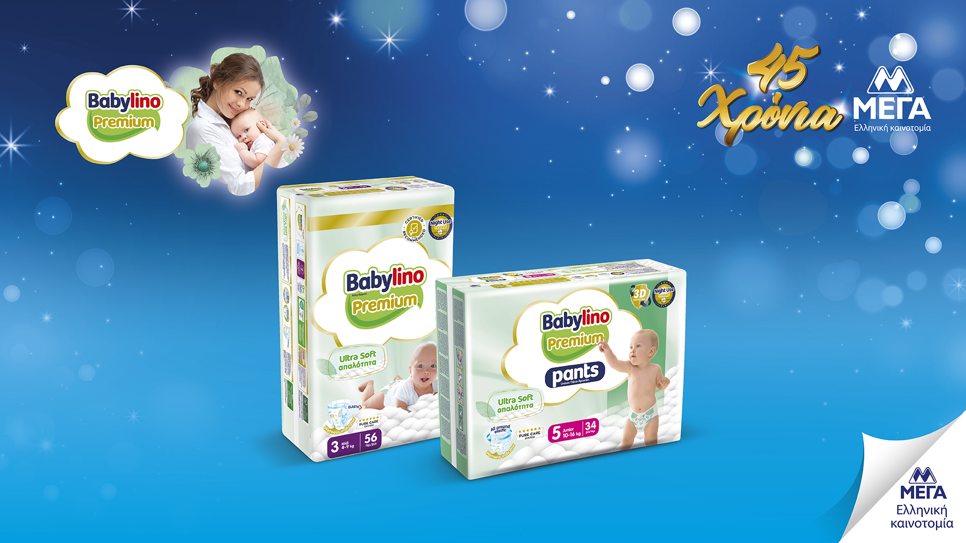 Πρόσφατα λάνσαρε τις νέες βρεφικές πάνες Babylino Premium. Μια βρεφική σειρά γεμάτη φροντίδα, ασφαλή προστασία και απίστευτα απαλά υλικά, σχεδιασμένη με βάση έρευνες καταναλωτών για το πώς θα ήθελαν την ιδανική πάνα. Επιμελώς μελετημένη, με στόχο τη μέγιστη δυνατή ασφάλεια για το βρεφικό δέρμα και ελεγμένη σε διεθνώς αναγνωρισμένα, αυστηρά δερματολογικά εργαστήρια του εξωτερικού. Το αποτέλεσμα; Μια πρωτοποριακή πάνα, Premium σε όλα της και με προηγμένη τεχνολογία 3D Protection: Super λεπτή, για να προσφέρει Premium εφαρμογή, επιτρέποντας μοναδική άνεση κινήσεων. Premium απορροφητική, με τεχνολογία Night Use tested. Πάνω από όλα, Premium απαλή, με ασύγκριτα απαλά καλύμματα…