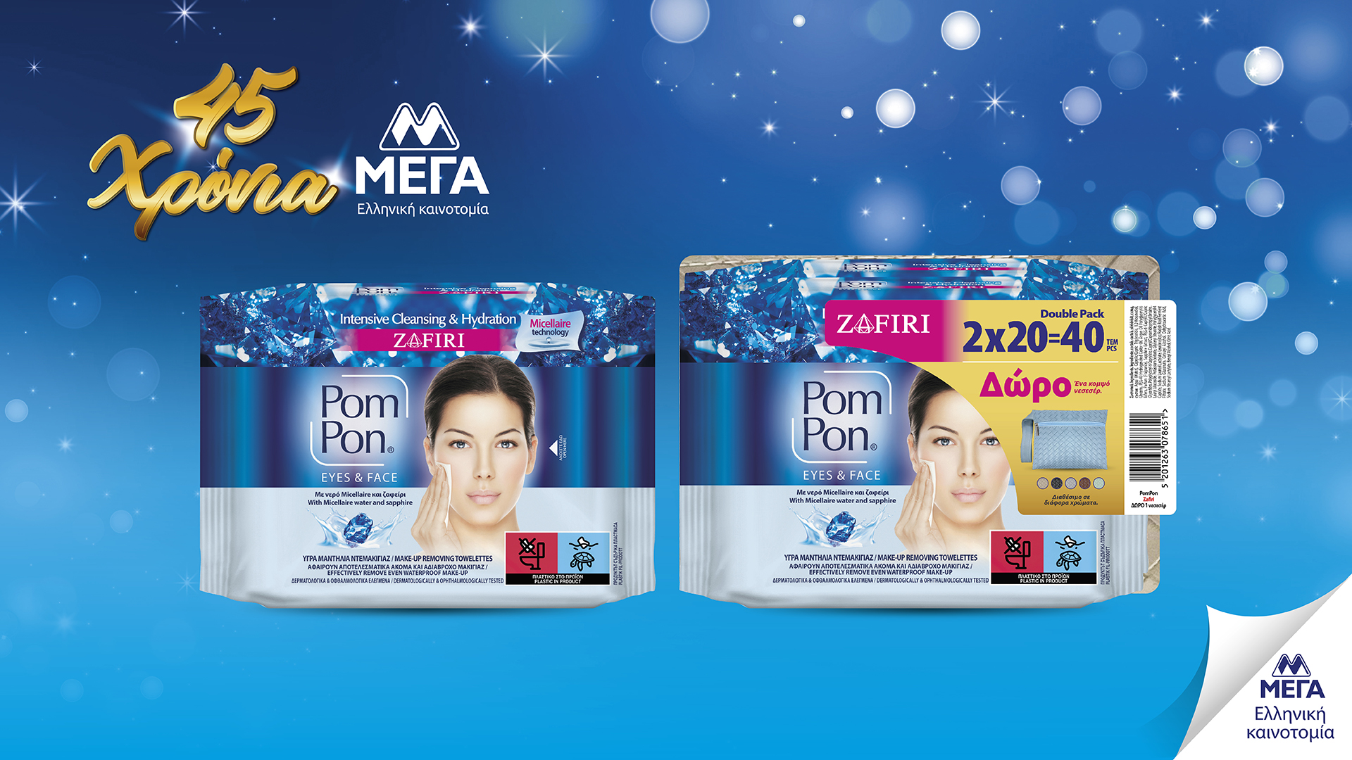 Τα νέα της εταιρείας συνεχίζουν, με λανσαρίσματα και στην κατηγορία των υγρών μαντηλιών, όπως το νέο μαντήλι ντεμακιγιάζ Pom Pon Micellaire Zafiri, που, χάρη στην προηγμένη formula ντεμακιγιάζ, ανταποκρίνεται στις πιο υψηλές απαιτήσεις αποτελεσματικής αφαίρεσης ακόμη και αδιάβροχου μακιγιάζ.