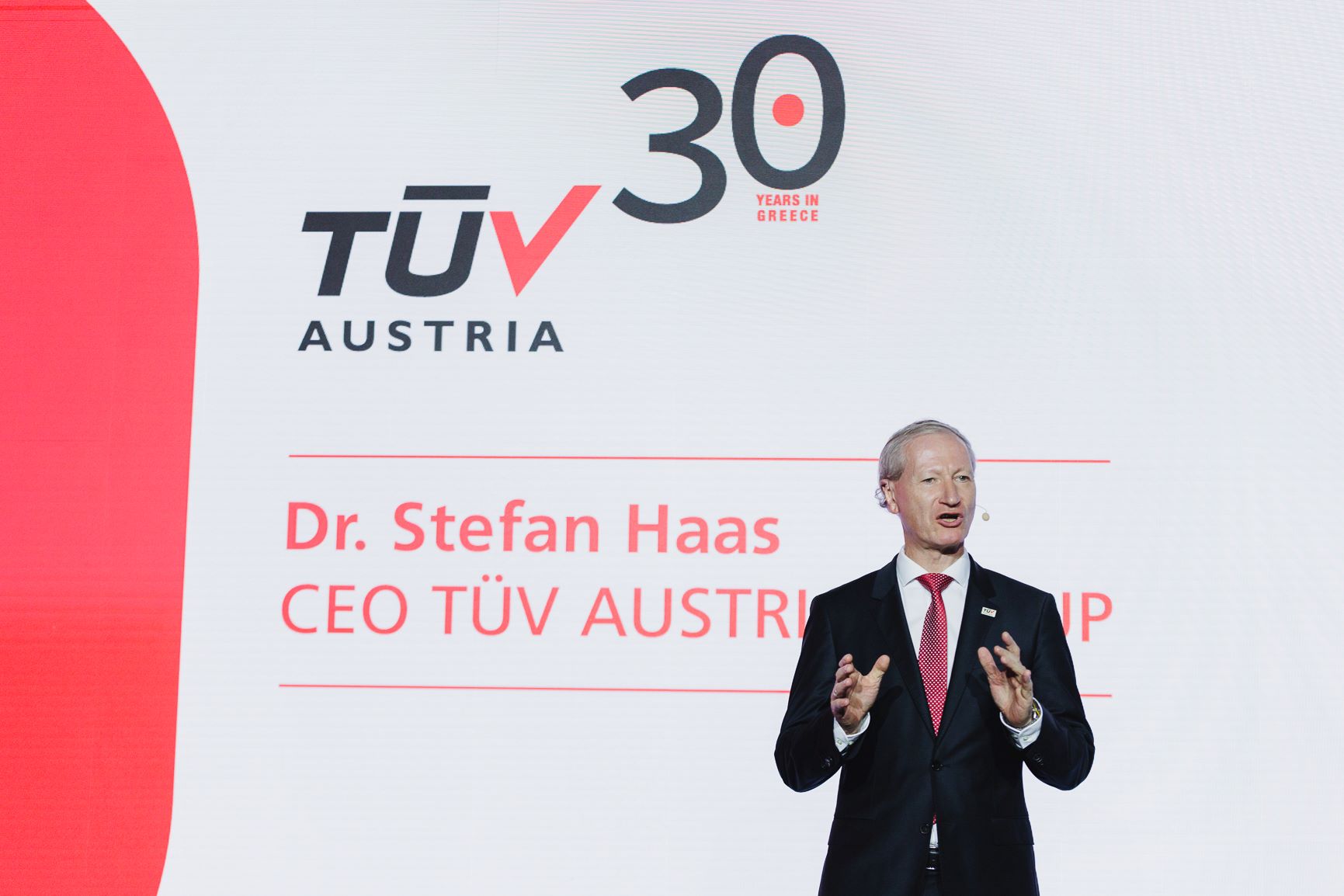 Το «παρών» στην εκδήλωση έδωσε και ο CEO του TÜV AUSTRIA GROUP, Dr. Stefan Haas, o οποίος δήλωσε «Η TÜV AUSTRIA στην Ελλάδα αποτελεί λαμπρό παράδειγμα της διεθνούς μας στρατηγικής για καινοτομία και αριστεία. Η επιτυχημένη της πορεία τα τελευταία 30 χρόνια επιβεβαιώνει τη δέσμευσή μας στη βιώσιμη ανάπτυξη και την παροχή κορυφαίων υπηρεσιών παγκοσμίως. Είμαστε περήφανοι για την ομάδα μας στην Ελλάδα και συνεχίζουμε να επενδύουμε σε νέες τεχνολογίες και ανθρώπινο δυναμικό για ένα ισχυρό μέλλον».