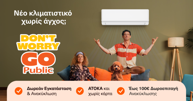Το πακέτο ολοκληρώνεται με δωρεάν εγκατάσταση: δεν χρειάζεται να ανησυχήσει κανείς για τεχνικά ζητήματα ή μεταφορές. Το μόνο που έχουν να κάνουν οι καταναλωτές είναι να διαλέξουν το κλιματιστικό που τους ταιριάζει. Οι ειδικοί των Public αναλαμβάνουν όλη τη διαδικασία, από την αποστολή μέχρι την τοποθέτηση – εύκολα, άμεσα και χωρίς ταλαιπωρία.
