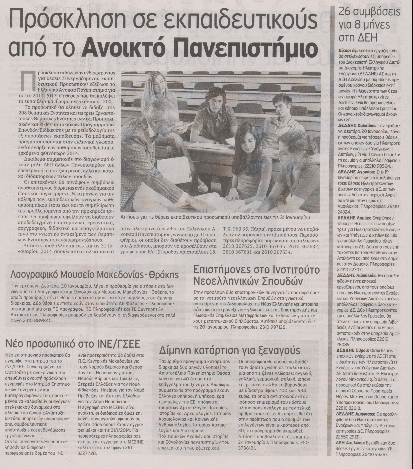 Στο Λαογραφικό Μουσείο Μακεδονίας-Θράκης και στο Ινστιτούτο Νεοελληνικών Σπουδών κατανέμονται πέντε και δύο θέσεις, αντίστοιχα. Στο μεταξύ, θέσεις εκπαιδευτικού προσωπικού προσφέρονται στο ΕΑΠ και στο ΙΝΕ ΓΣΕΕ.