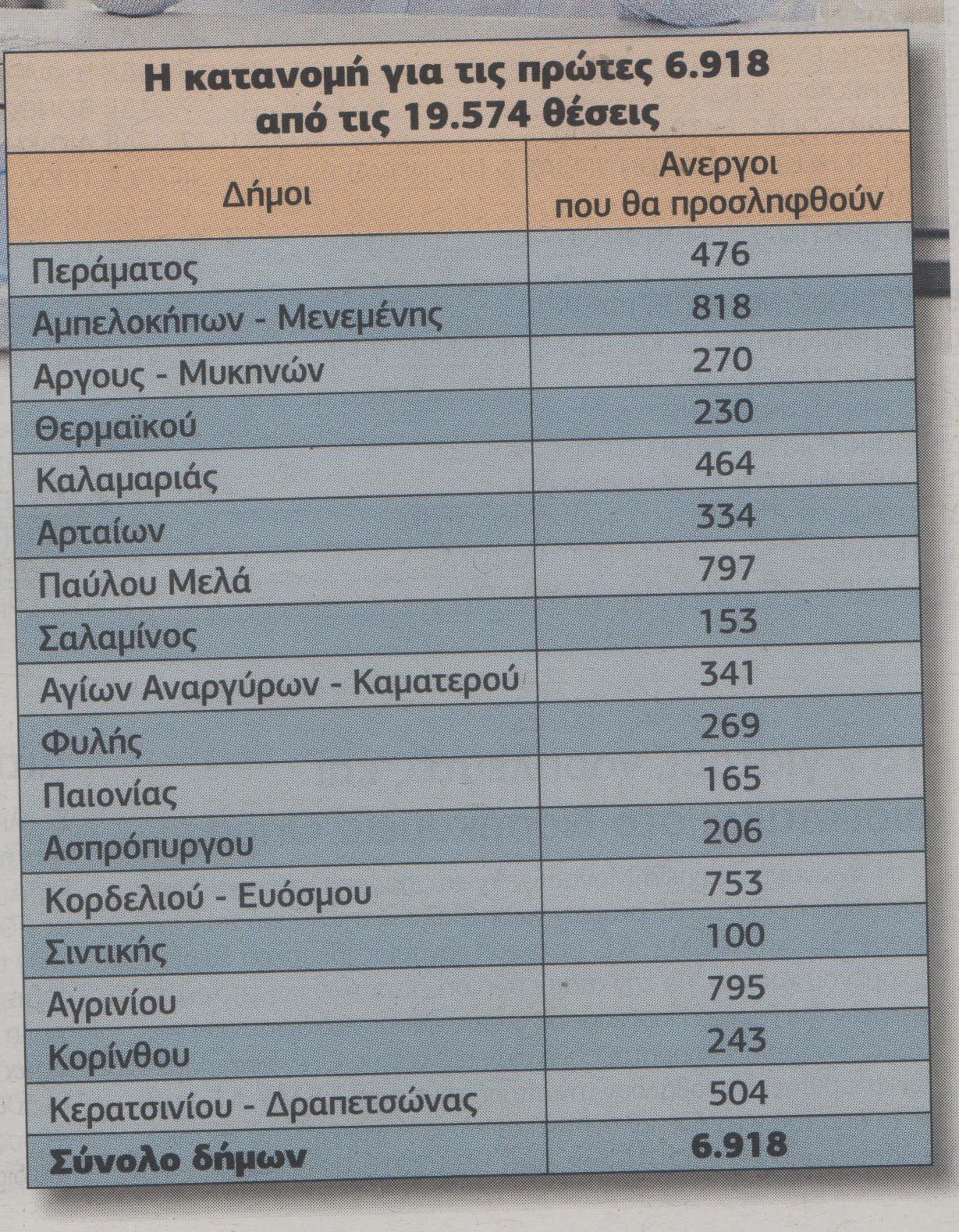 Στην κοινωφελή εργασία θα προσληφθούν 19.574 άνεργοι και στα κέντρα εγκατάστασης προσφύγων θα εργαστούν άλλοι 5.000. Κατά προτεραιότητα θα προσληφθούν άνεργοι που βρίσκονται εκτός εργασίας από 12 ως και 36 μήνες, ώστε να αντιμετωπιστεί το πρόβλημα της μακροχρόνιας ανεργίας και μάλιστα σε δήμους και περιοχές της χώρας όπου η ανεργία χτυπάει… κόκκινο.