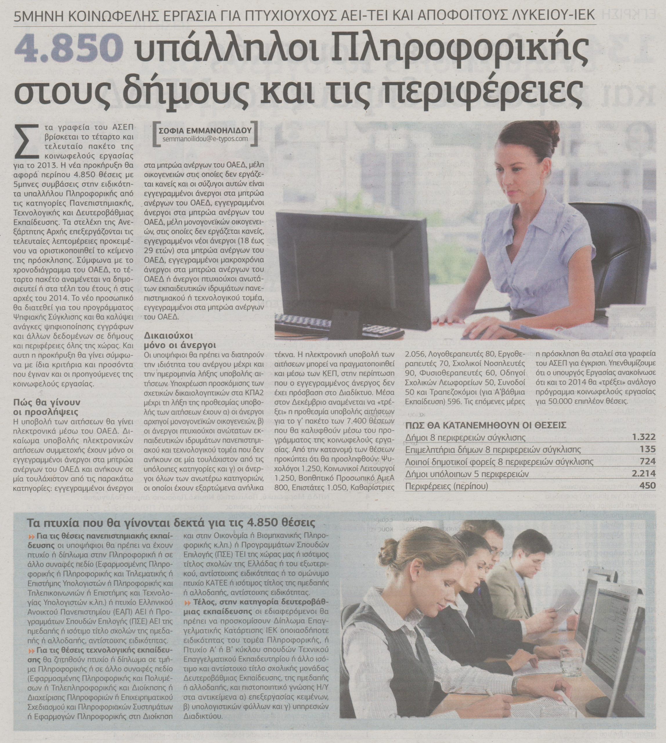 4.850 υπάλληλοι πληροφορικής στους δήμους και τις περιφέρειες