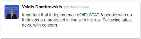 Ο αντιπρόεδρος της Κομισιόν, τονίζει χαρακτηριστικά ότι «είναι σημαντικό η ανεξαρτησία της ΕΛΣΤΑΤ και των ανθρώπων που κάνουν τη δουλειά τους να προστατεύονται σύμφωνα με τον νόμο. Παρακολουθούμε τις τελευταίες εξελίξεις με ανησυχία».