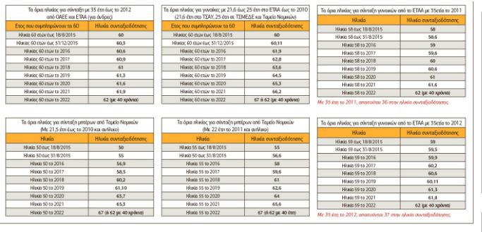 Για όσους έχουν συμπληρώσει την 35ετία έως τις 31/12/2012, η αφετηρία της συνταξιοδότησης είναι το 60ό έτος. Αν έχουν την ηλικία μέχρι 18/8/2015, τότε μπορούν να αποχωρήσουν οποτεδήποτε. Αν το 60ό έτος συμπληρώνεται από 19/8/2015 και μετά, τότε αλλάζει και η ηλικία συνταξιοδότησης και αυξάνεται κατά 3 μήνες κάθε έτος. Το 60ό έτος για το 2017 έχει όριο ηλικίας τα 60 και 9 μήνες, ενώ το 2018 το όριο ανεβαίνει στα 61.