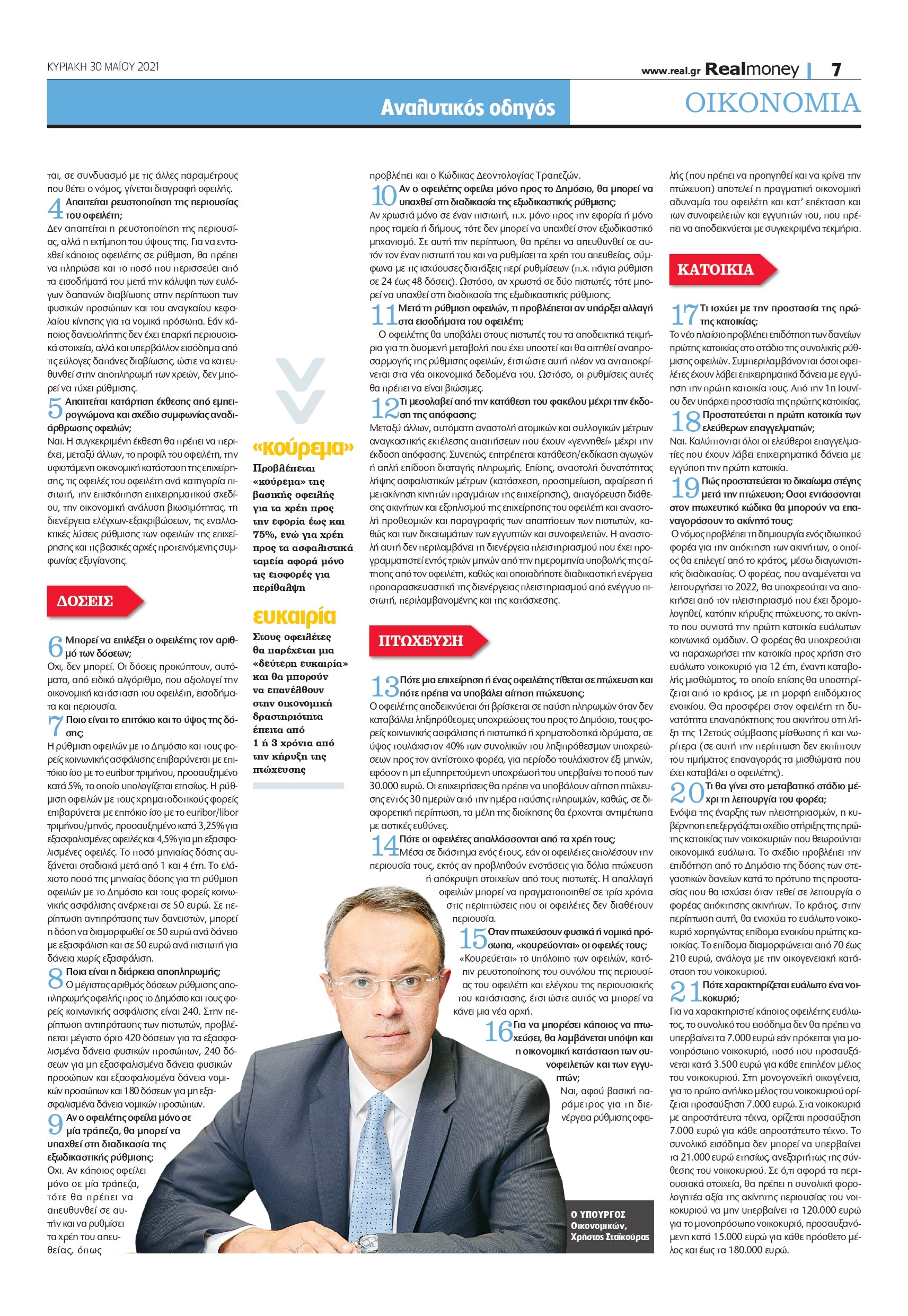 – «Κούρεμα» του αρχικού ποσού του δανείου έως και 80%. Δηλαδή, το «κούρεμα» προς τις τράπεζες δεν μπορεί να είναι μεγαλύτερο από 80% των απαιτήσεών τους, εξαιρουμένων των τόκων υπερημερίας για τους οποίους δεν υπάρχει όριο. Το «κούρεμα» της βασικής οφειλής εισάγεται για πρώτη φορά και αποτελεί το πιο σημαντικό όπλο μείωσης του ιδιωτικού χρέους. Οι οφειλές που εξαιρούνται από το «κούρεμα» της βασικής οφειλής είναι: