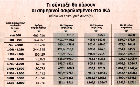 Τα στοιχεία που επεξεργάστηκε η εφημερίδα δείχνουν ότι από το σύνολο των ασφαλισμένων στο ΙΚΑ, πιθανότητες να πάρουν σύνταξη άνω των 1.000 ευρώ, ύστερα από την αλλαγή στον τρόπο υπολογισμού των συντάξεων, έχουν μόνο… 70.000 εργαζόμενοι σε σύνολο περίπου 2 εκατομμυρίων ασφαλισμένων.