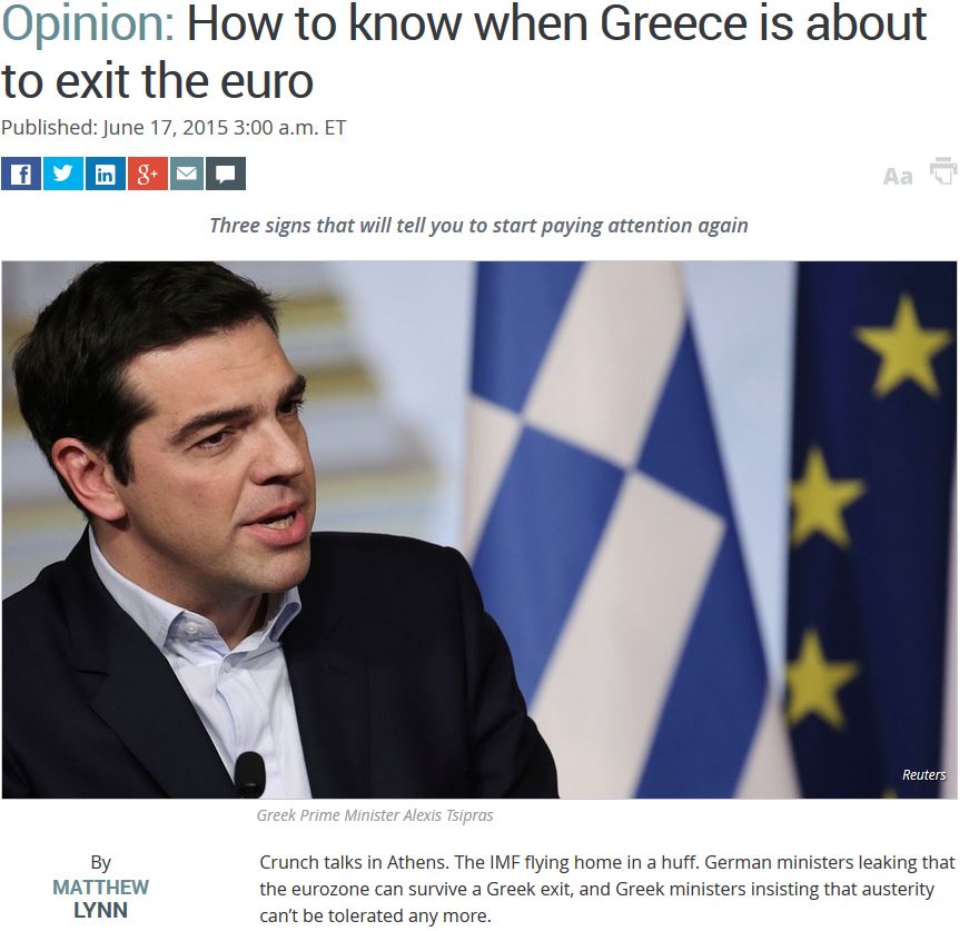 Η ελληνική κρίση χρέους έχει ήδη αρχίσει να κάνει το “Game of Thrones” να μοιάζει με μικρό αφήγημα. Πως θα καταλάβει κάποιος ότι έρχεται πράγματι Grexit, απαντά σχόλιο στο MarketWatch.
