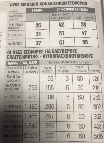 Σε ό, τι αφορά τις εισφορές για τις επικουρικές , θα διαμορφώνονται ως εξής: