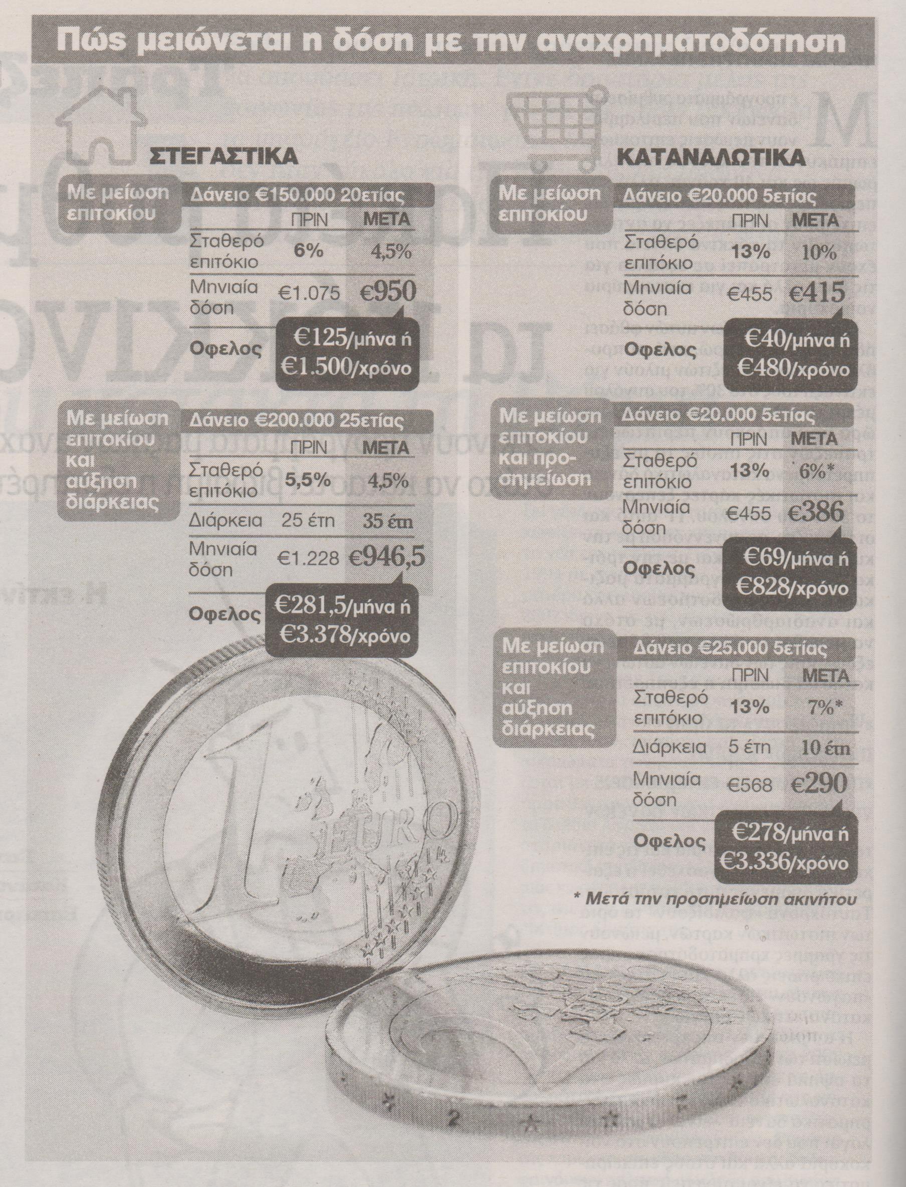 Γι΄ αυτό και οι τράπεζες, σε συνεννόηση με την κυβέρνηση, αλλά και με την τρόικα, ξεκινούν προγράμματα μαζικών αναχρηματοδοτήσεων, με στόχο να μειωθεί το ύψος των δόσεων εξόφλησης των δανείων αυτών, να καταστεί βιώσιμη η εξυπηρέτησή τους από τα νοικοκυριά και τις επιχειρήσεις και να ανασχεθεί η εξαιρετικά δυσμενής αυτή κατάσταση.