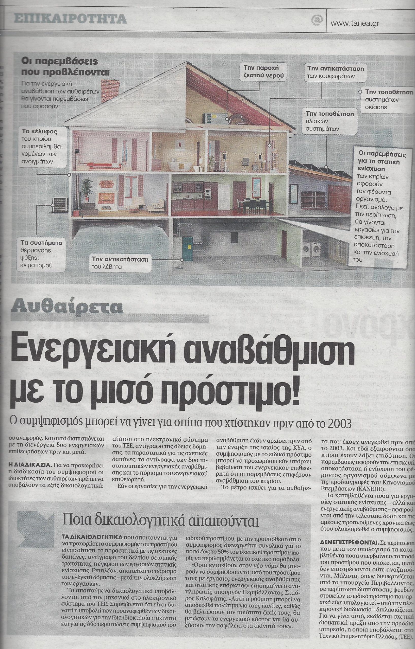 Οι ιδιοκτήτες αυθαιρέτων που χτίστηκαν πριν από το 2003 μπορούν με την ένταξή τους στον νέο νόμο για τη διευθέτηση των αυθαιρέτων να εκμεταλλευτούν το 50% του προστίμου για να αναβαθμίσουν ενεργειακά και να ενισχύσουν στατικά τα κτίριά τους.