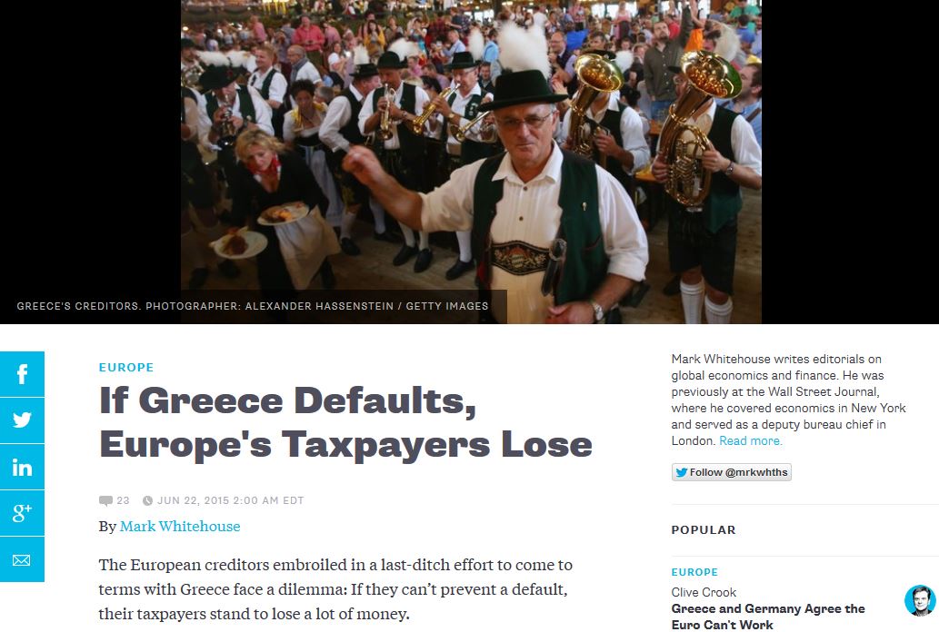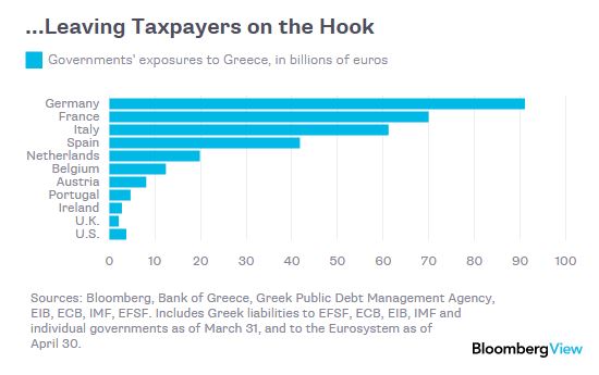 Πόσα λεφτά κινδυνεύουν να χάσουν οι επίσημοι πιστωτές, τα κράτη, εάν δεν υπάρξει συμφωνία και κηρύξει στάση πληρωμών η Ελλάδα, εξετάζει το Bloomberg View.