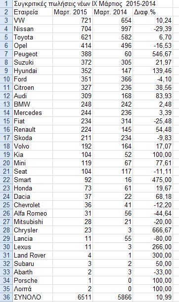 Δείτε τα αναλυτικά αποτελέσματα των πωλήσεων νέων ΙΧ Μαρτίου: