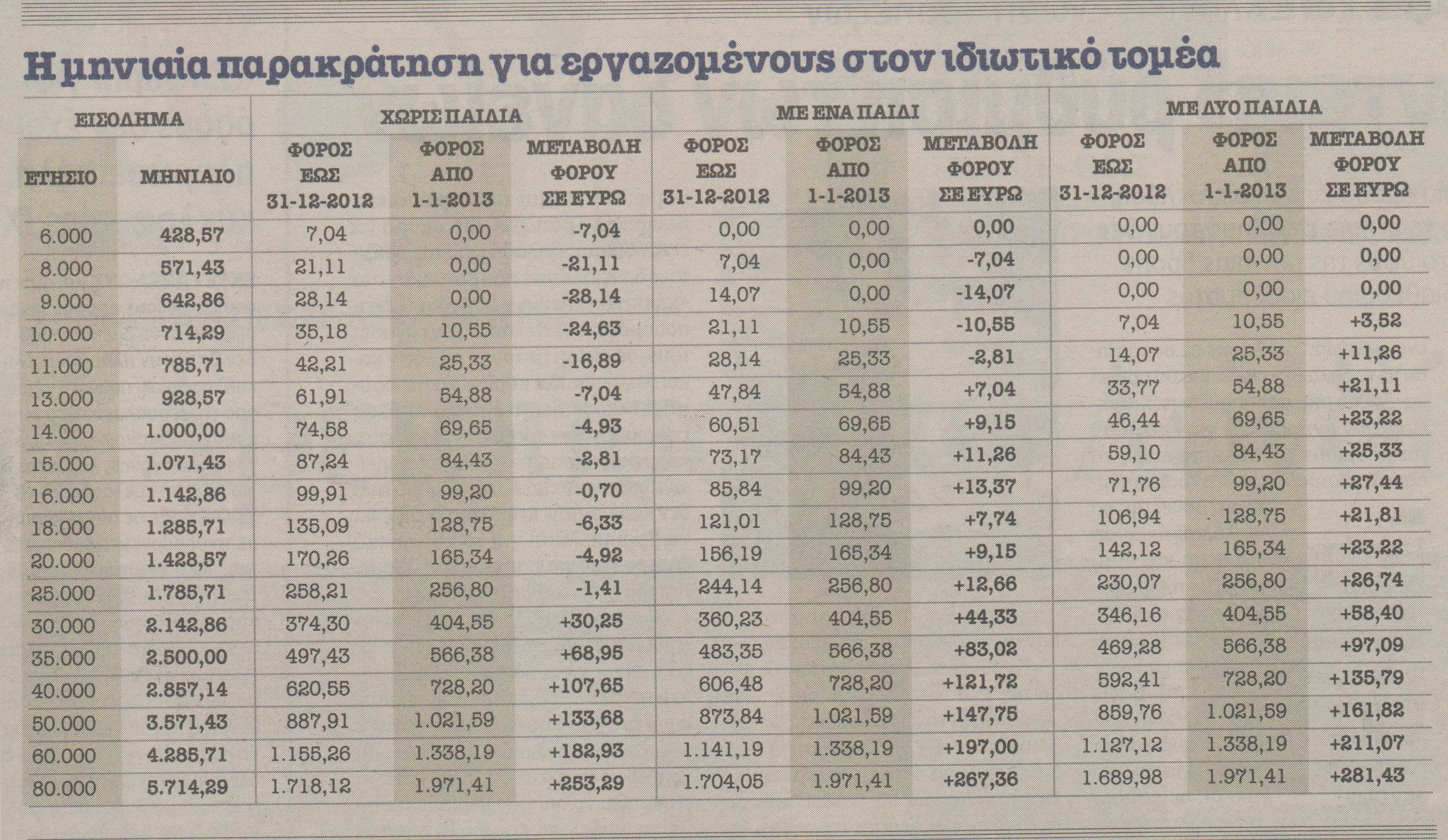 Το 2013 η παρακράτηση φόρου θα γίνεται με βάση τη νέα φορολογική κλίμακα που έχει ετοιμάσει το Υπουργείο Οικονομικών και θα συμπεριληφθεί στο νομοσχέδιο που θα έρθει στη Βουλή, ίσως και εντός της τρέχουσας εβδομάδας.